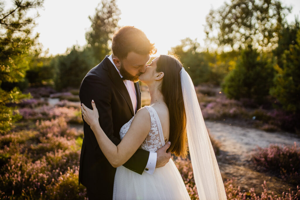 • Sesja plenerowa w dniu ślubu: Nawet krótka, 30-minutowa sesja tuż po ceremonii lub w trakcie wesela potrafi zdziałać cuda. Idealnym momentem jest tzw. złota godzina (godzina przed zachodem słońca), kiedy światło jest miękkie, ciepłe i niezwykle malarskie. Zapytajcie fotografa, o której godzinie wypada w dniu Waszego ślubu.